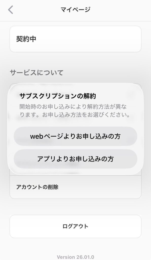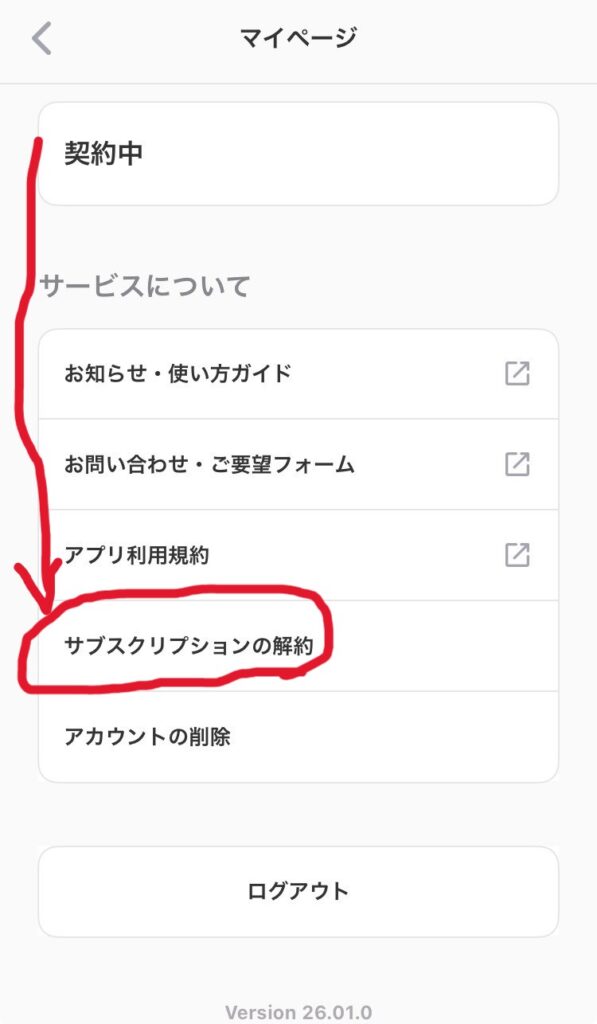 | 解約場所 | アプリ内の「マイページ」から手続き |